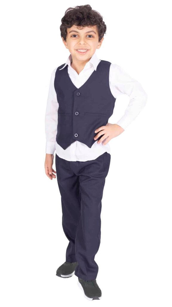 احصل على طقم رياضي 3 قطع ابتدائي قطني باللون الكحلي لتمنح طفلك الراحة والحرية في الحركة طوال اليوم.