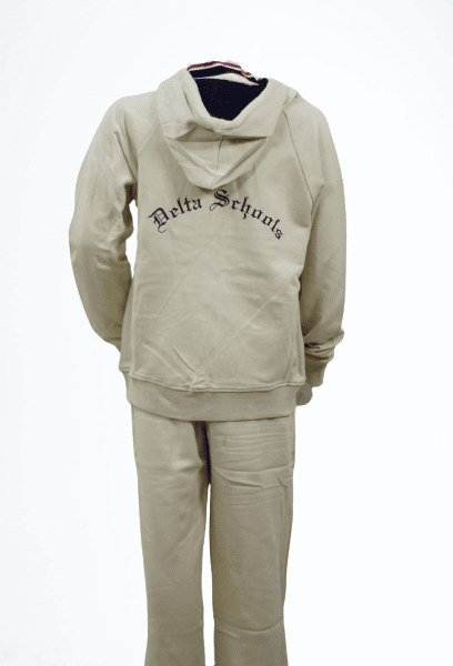 طقم كامل للأولاد خاص بمدارس دلتا العاملة عبارة عن قميص أبيض وكرفتة وبنطلون كحلي وسويتر كحلي بالإضافة إلى طقم رياضة مكون من ثلاث قطع